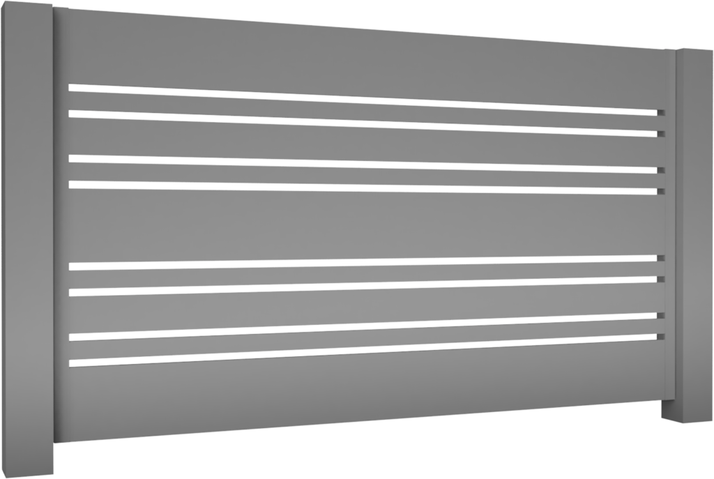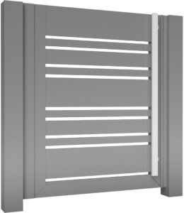 Modell N06Aluzaun horizontale Lamellen von 200, 100 und 50x20mm beliebige Anordnung und Anzahl von Einzellamellen Lamellenabstand individuell anpassbar Pforte Exklusiver Edelstahl-Griff ZaunfeldAluminiumpfosten Zaunfeld Premium LongAluminiumpfosten Schiebetor Schiebetor PRO – CETA